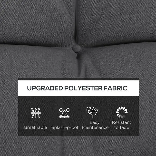 Add comfort and elegance to your outdoor furniture. Aosom has a set of bench cushions and throw pillows you can use to create a plush sitting space instantly. Their thick filling and tufted design not only make them nice to look at but also help them retain their shape after hours of use. They're water resistant, wipe clean, and tie in place to avoid issues with wind. Give your bench an upgrade with Aosom.