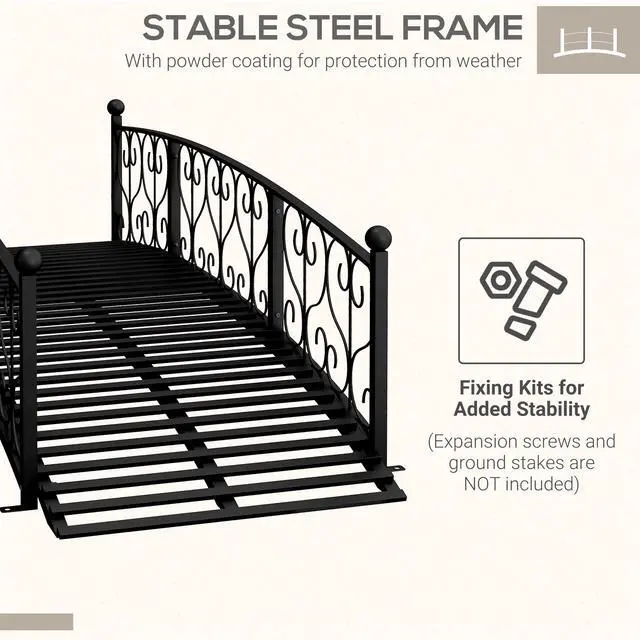 Aosom's vintage-style pond bridge features safety rails and adds charming antique decor to your backyard stream, zen garden, creek, fish pond, or walkway. A centerpiece for your landscape, watch as the antique scrollwork "S" shapes draw in your eyes, and put the cherry on top of your garden. Practical landscaping can be exciting. Have form and function with this fantastic Aosom footbridge.