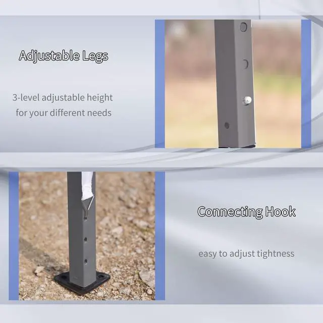 - - Three-level adjustable powder-coated steel frame