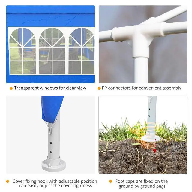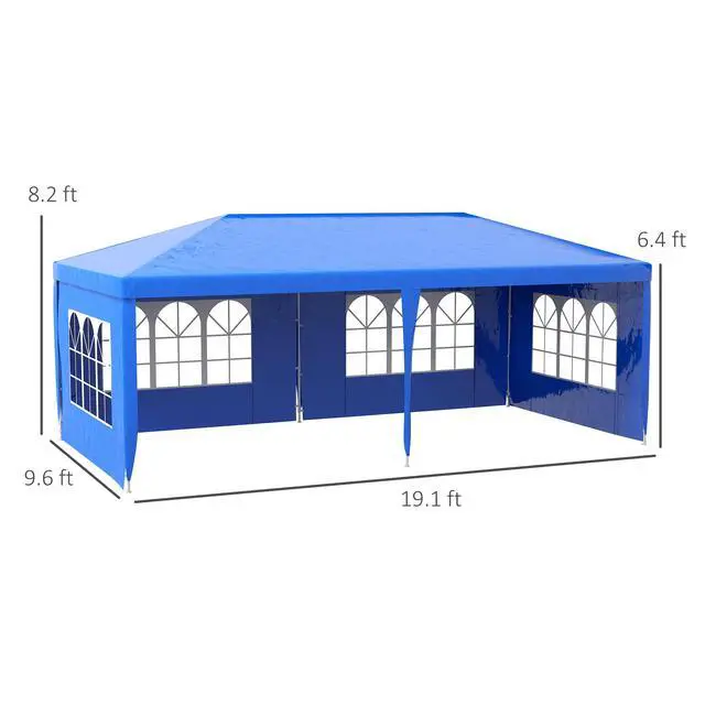 Whether you want to put on a backyard birthday party, BBQ, or wedding, our large tents for events can solve your issue without issues that come from rentals. Aosom's party tent is water-safe and supplies 9.6' x 19.1' feet of shade for your event. Its PE tarp with drainage holes blocks UV and light showers, keeping guests dry and sunburn-free. 4 sidewalls included with our party gazebo let you eliminate glare or keep cool in the open air. Get out, get comfy, get Aosom.