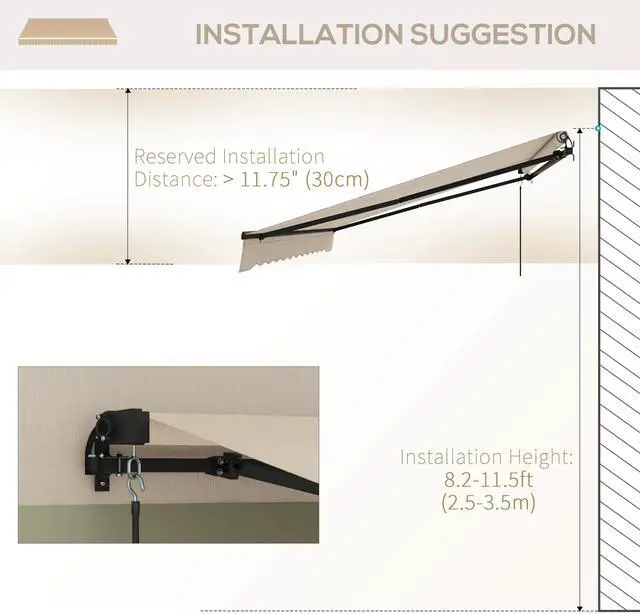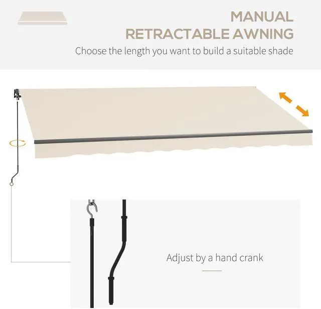 When rain arrives or the sun starts beating down, wouldn't it be nice to know you've got it covered? Aosom's manual retractable awning can end your weather woes. Adapt the length and angle of your backyard awning to the sun's position. Get glare out of windows, sit cozily as you eat outside, and have your house look good doing it. Our deck awning is built for strength and style with weather-safe construction and a ruffled edge to make it an instant accent. Get out, get comfy, get Aosom.
