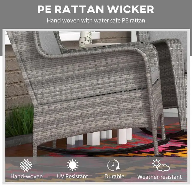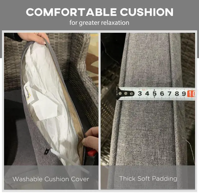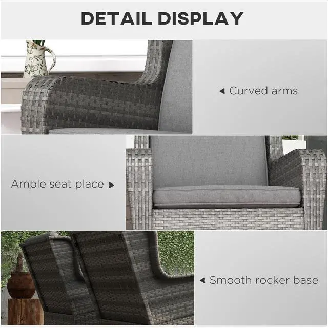 Sway through the breeze and spend time outside with Aosom's comfy outdoor rocking chair. The seat and back of our porch rocker feature soft padded cushions, and thick armrests cradle you all around as you tilt back and forth on a soothing, quiet rocking base. Handwoven, this patio rocking chair offers a classic look with all-weather materials. No need to cry over spilled milk; the cushion covers are removable to make spot cleaning easy. Get out, get comfy, get Aosom.