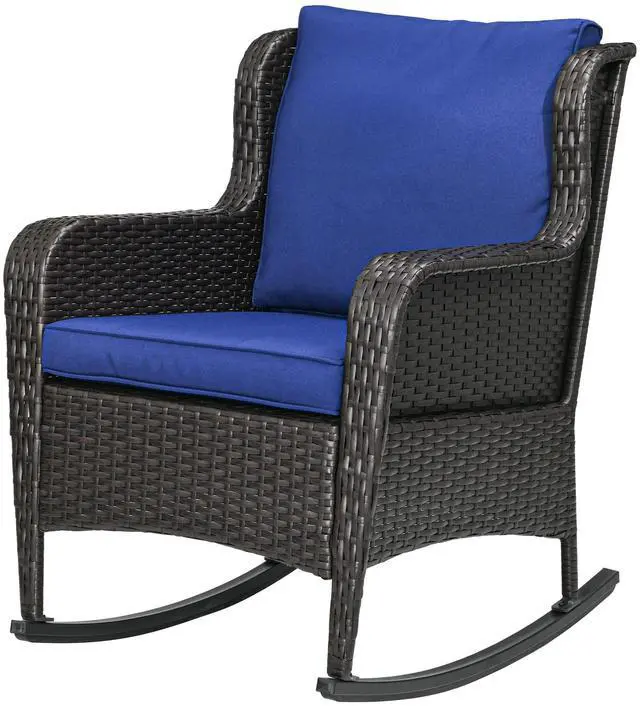 Sway through the breeze and spend time outside with Aosom's comfy outdoor rocking chair. The seat and back of our porch rocker feature soft padded cushions, and thick armrests cradle you all around as you tilt back and forth on a soothing, quiet rocking base. Handwoven, this patio rocking chair offers a classic look with all-weather materials. No need to cry over spilled milk; the cushion covers are removable to make spot cleaning easy. Get out, get comfy, get Aosom.