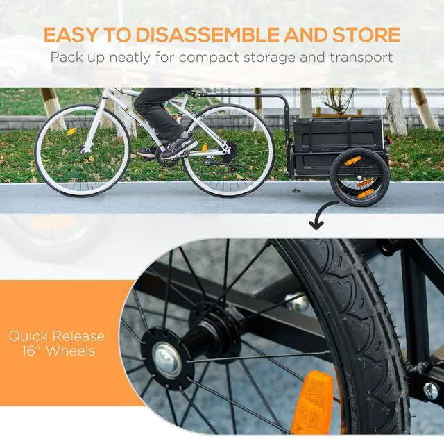 Because your safety comes first, the triple visibility details on this trailer for bike alert those around you from multiple directions. A red flag and reflectors keep you protected and secure throughout the trip, eliminating danger in low lighting. Large but foldable for smaller storage and lightweight but tough with steel, this Aosom design keeps a balance between size and weight, offering a feel-good ride that's smooth with shock absorption.