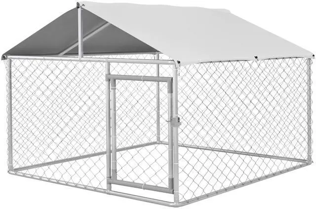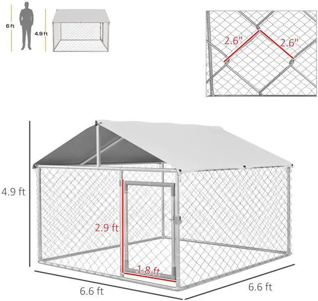 This Aosom outdoor kennel caters to burning energy, feeling comfortable, and having plenty of space. Keep small and medium-sized dogs cool, dry, and covered in the roofed living area that offers shade and rainproof protection. Prevent excited pups from jumping over the edges with its tall wall height and roof. This heavy-duty outdoor dog cage has strong steel railings, offering the durability to outlast harsh use.