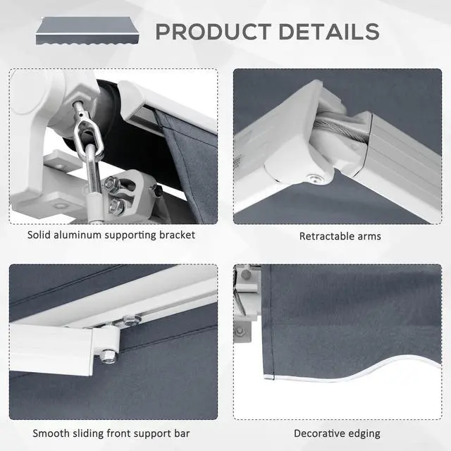 With a tough aluminum and steel frame, Aosom retractable patio awnings offer outdoor shade. Our awnings create a cool, comfy place on your patio and protect you from UV rays. The reinforced frame and water-resistant polyester fabric make our window awnings superior in material and excellent in workmanship. Our door awnings let you enjoy protection and an accent piece at a reasonable cost. They easily mount on the wall with the included accessories. Get out, get comfy, get Aosom.