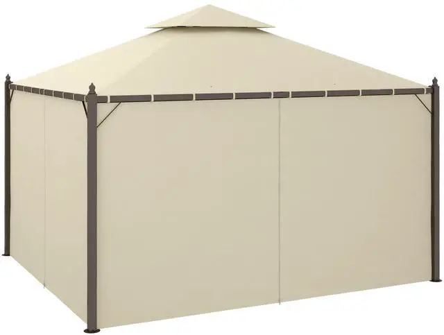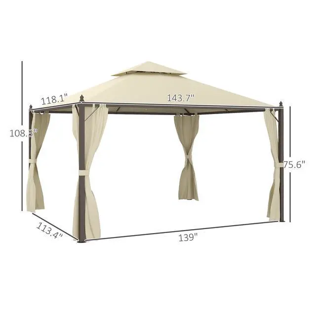 • Aosom 10' x 12' Outdoor Patio Gazebo with Curtains, Two-Tier Roof, Beige