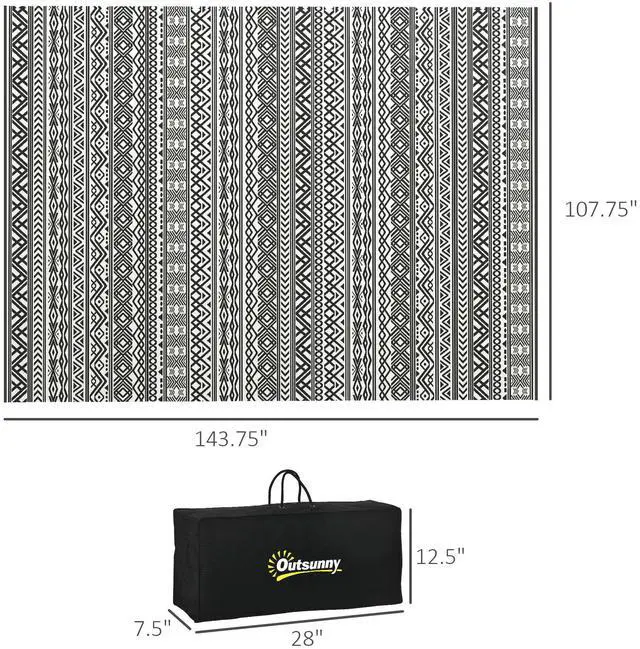 • Aosom 9ft x 12ft Reversible Waterproof Outdoor Rug for Camping & Patio Picnic in Gray & Cream White Boho