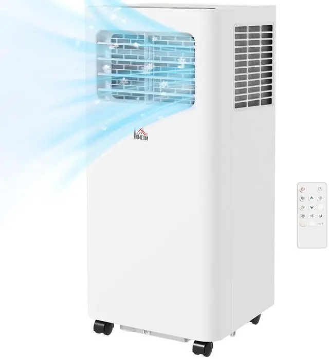 Stay cool and comfortable with the Aosom Portable Air Conditioner. This 3-in-1 marvel not only cools your space (16-30â) but also dehumidifies, fans, and ensures peaceful sleep with its quiet mode. Great for areas up to 345 sq ft, it's your go-to for efficient air conditioning. Enjoy the ease of LED touch controls, a remote, and a portable AC unit design that moves easily to where you need it most.