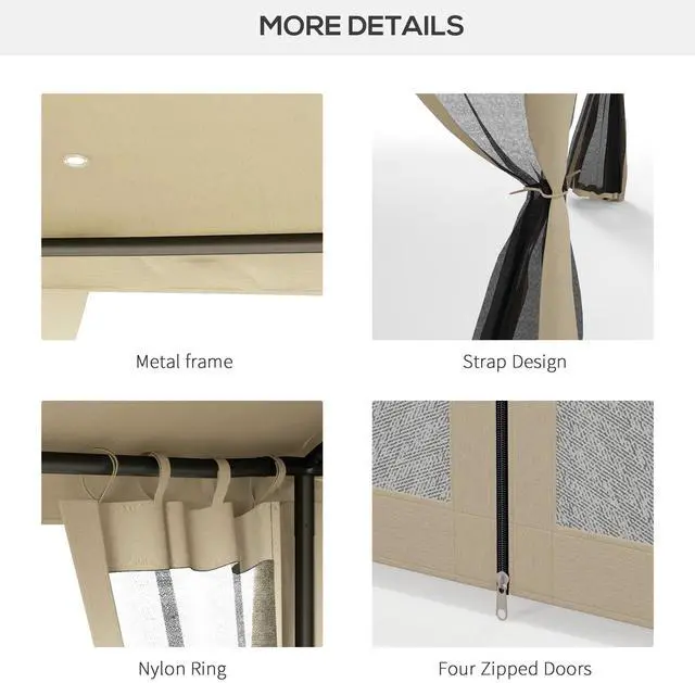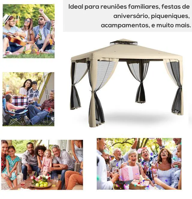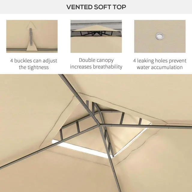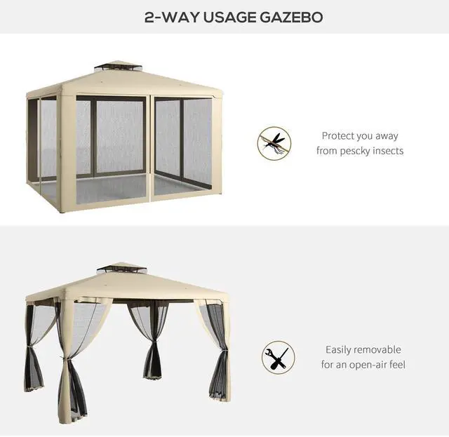 With roughly 111 square feet of shade, an Aosom patio gazebo fits a crowd without feeling crowded. Whether you're planning a picnic, camping trip or just want protection for the patio, don't give guests a sunburn as a party favor. Our gazebo has a 2-tier polyester canopy made of PA-coated polyester to block UV and light rain, keeping you cool and dry. Four mesh walls and a protected top let in the breeze while keeping out things that bite. Get out, get comfy, get Aosom.