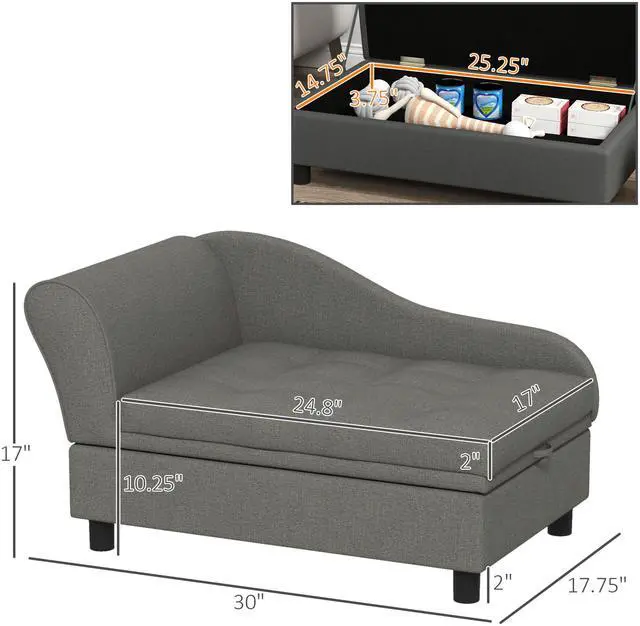 Give your furry friend person-level comfort with our Aosom pet sofa bed. The seat cushion features a 3" thick padding to optimize support for relaxation. Keep toys and essentials organized and within reach with convenient under-seat storage. Not only does our dog sofa offer comfort and practicality, but its stylish design adds a touch of elegance to any room. Treat your pet to a cozy retreat while adding functionality to your space with an impressive dog sofa.