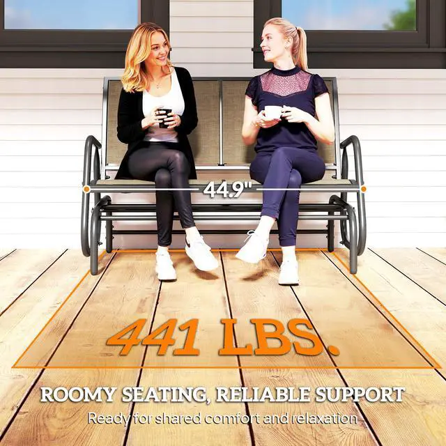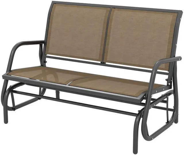 Made out of a ventilating mesh seat and backrest, this patio glider chair provides fantastic comfort and coziness. The curved rocker arms of our patio gliders for outside bring a smooth, soothing motion. This double swing chair allows you and a friend greater comfort on the patio, yard, or porch. If you prefer to read a book or take a nap in the shade rather than sunbathe, our glider chair is lightweight, letting you move it with little effort.
