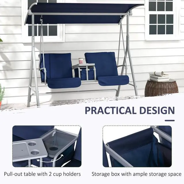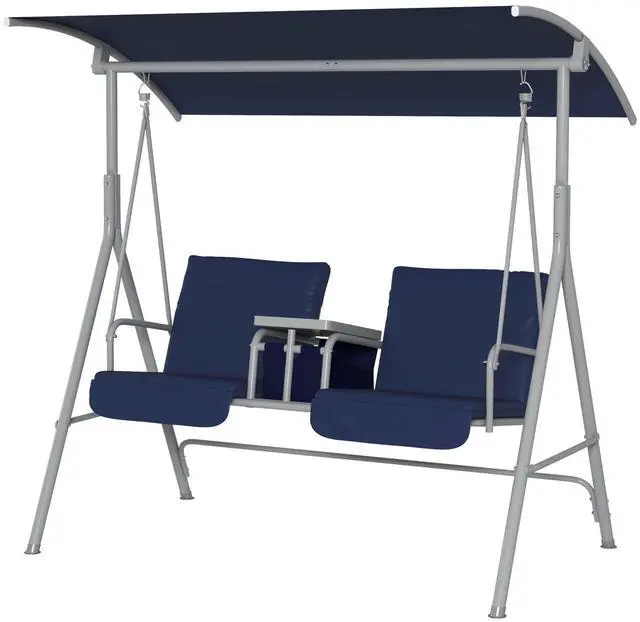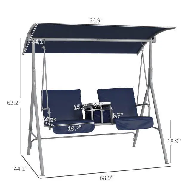 You've waited a while for a warm weekend. You got that fancy swing you've always wanted. But, your drink spilled all over your clothes, and the seat too, what a mess. Not with Aosom. Aosom has lawn swings with canopy for everything. Swing cool under the shade and stop sunburns with an adjustable canopy. Swing comfy on cloud-like cushions. Each seat has armrests. A tray offers room for a phone; storage keeps things dry outside, and cupholders keep everything in order.