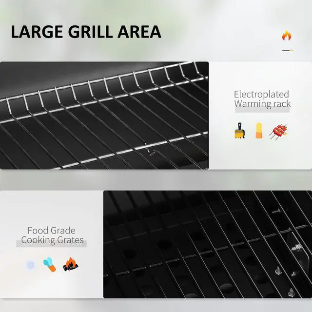 - - Spacious cooking grates and warming rack with food-grade wiring