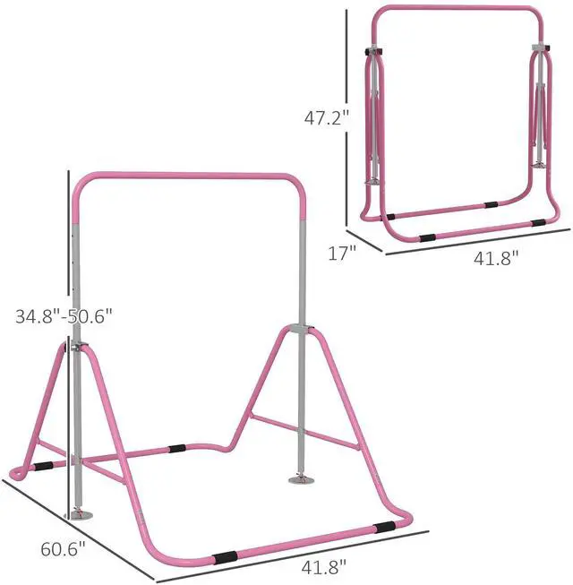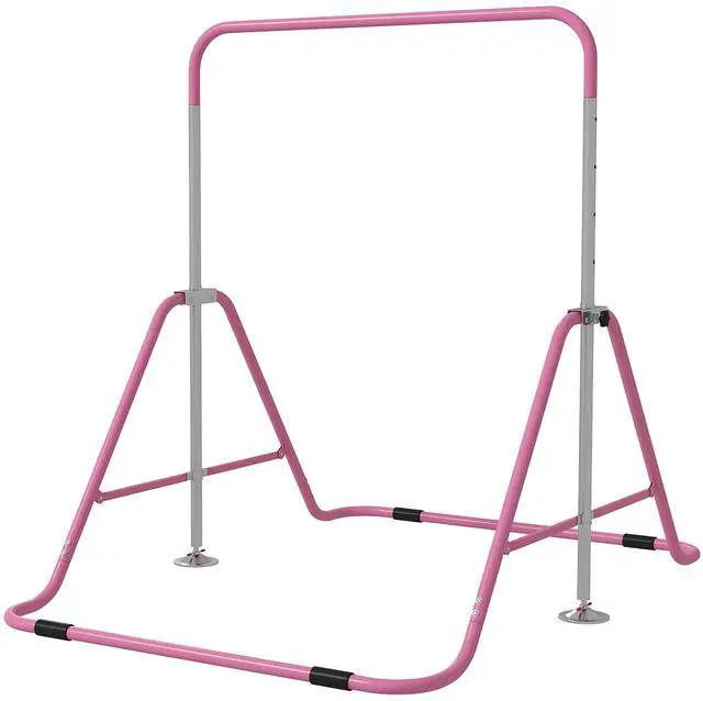When you provide your child an outlet to burn energy, you need a design stays still and sure-footed for safety. This kids gymnastics bar from Qaba has the sound and secure, firmly grounded base you need, featuring shock absorption to reduce vibrations, non-slip feet, and structural integrity. Fold the stand up to keep it out of the way when not in use. This highly adjustable design is built to let your kids work out at home from age 3 to 8.