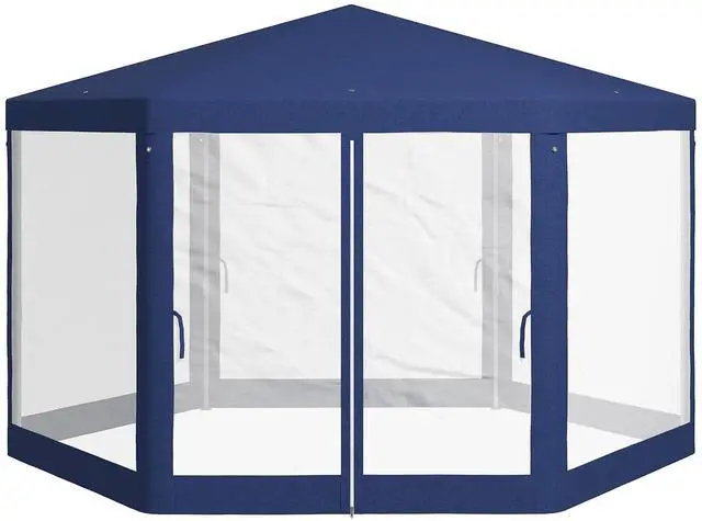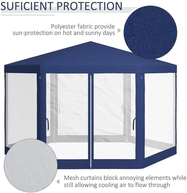 Fit a crowd without making them feel crowded. Aosom's large hexagon party tent stops sunburn and lets you enjoy the breeze without unwanted winged things. It has six mesh sidewalls to filter your sitting space, making the outdoors even better. Host parties like barbeques, or use it as a wedding tent. It has two doors on each side and is the size needed for all sorts of outdoor events. Get out, get comfy, get Aosom.