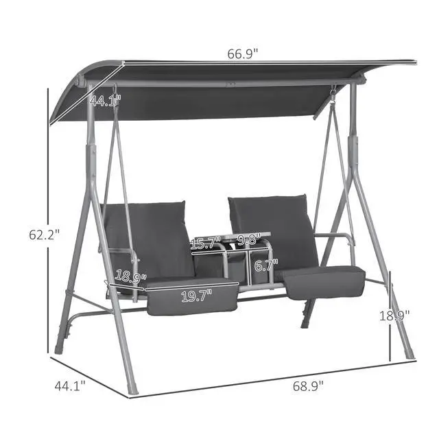 You've waited a while for a warm weekend. You got that fancy swing you've always wanted. But, oh god, your drink spilled all over your clothes, and the seat too, what a mess. Not with Aosom. Aosom has lawn swings with canopy for everything. Swing cool under the shade and stop sunburns with an adjustable canopy. Swing comfy on cloud-like cushions. Each seat has armrests. A tray offers room for a phone; storage keeps things dry outside, and cupholders keep everything in order.