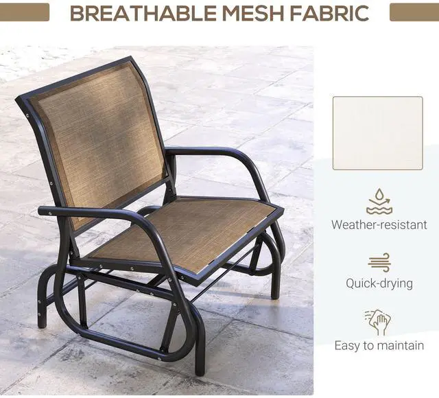Glide through the summer with Aosom. This outdoor patio glider offers form and function for any space outside: backyard, balcony, porch, pool, or garden; get gliding and sit in style. The seat of our outdoor glider chair is crafted from breathable mesh that stays cool in the summer sun and dries off fast. Sit back and take in the summer breeze without worry. Its frame is strong steel and it sits on nonslip foot pads to keep you from falling and stop surfaces from getting scratched.