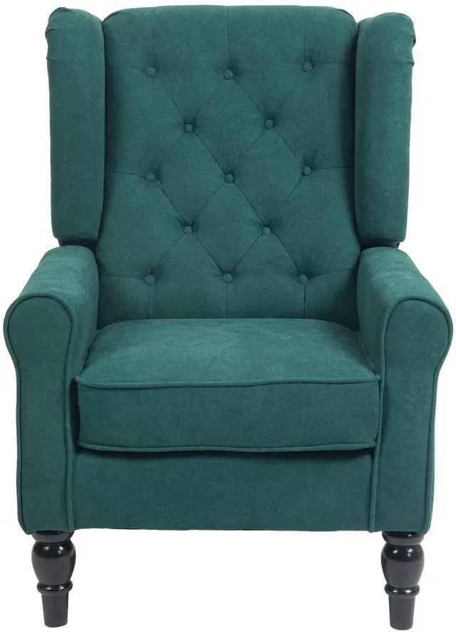 Bring style and character to your living space with this Tufted Accent Chair from Aosom. This chair wonderfully complements any decor with elegantly tufted cushions, wood legs, and a fully padded seat. Breathable linen-look fabric encases thick padded cushions to give you hours of comfortable, stylish sitting, while colorful upholstery give this chair a stunning, unique appearance that is sure to stand out in all the right ways. Have fun with your space with our fashionable accent chair.