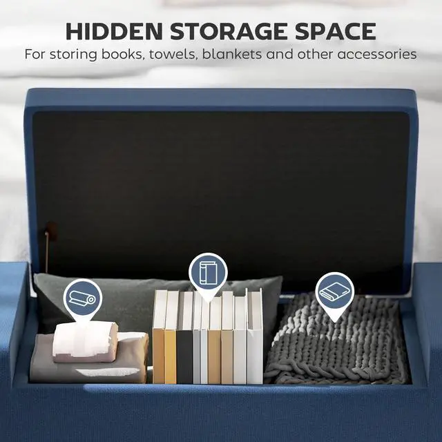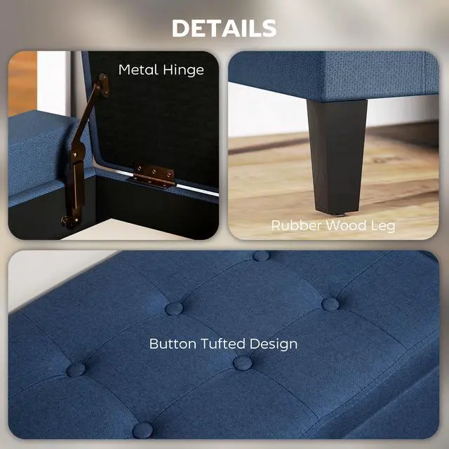 • Aosom Upholstered Storage Ottoman Bench, Button Tufted Ottoman with Hidden Storage, Lift Top for Living Room, Dark Blue