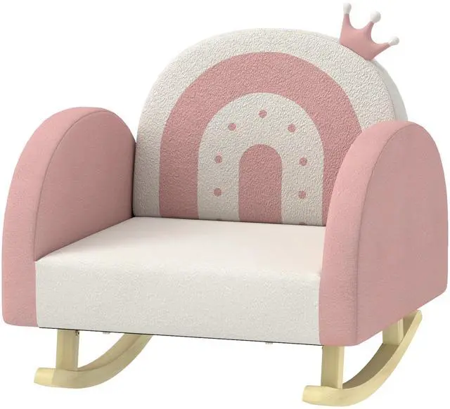 Transform your little sweetie's space into a magical kingdom with the Qaba comfy toddler chair. Featuring a whimsical crown decoration and a vibrant rainbow pattern, this toddler chair rocks gently back and forth, offering a cozy nook for relaxation. Its plush, velvet surface is excellent for lounging, reading, or watching TV, making it an enchanting addition to any playroom or bedroom that's suitable for ages 18 months to 3 years.