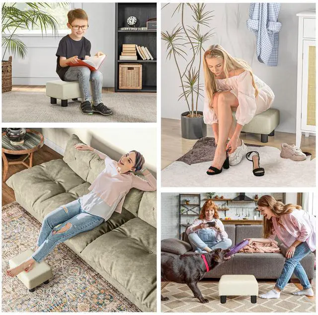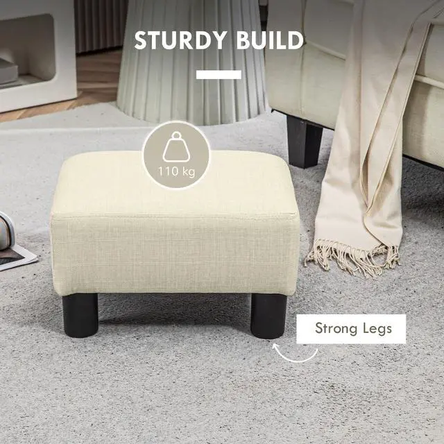 • Aosom Small Ottoman Foot Rest, Foot Stool with Linen Fabric Upholstery and Plastic Legs, Cube Ottoman, Beige