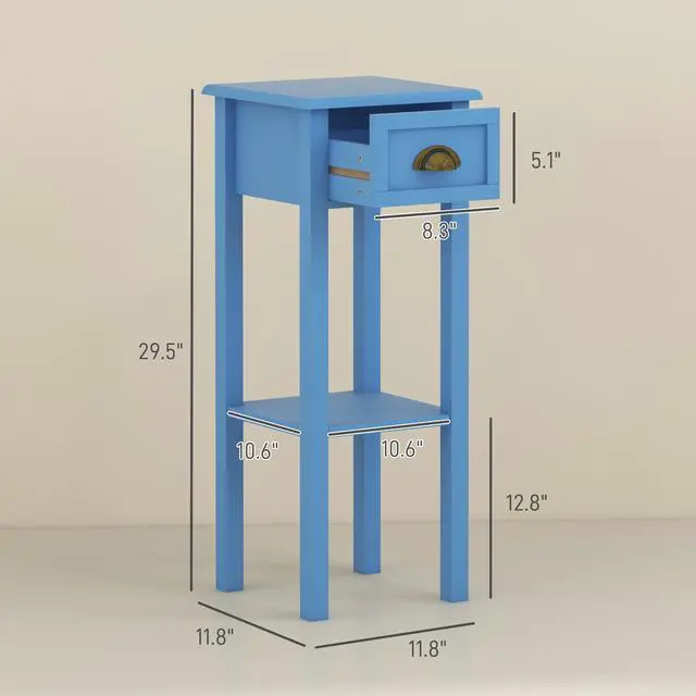 Add a beautiful accent piece to your home while giving yourself extra storage with this narrow end table from Aosom. Place the end table in your living room or hallway to hold items you use daily or as a decorative display shelf. The drawer allows you to store small objects without getting lost. It's compact enough to fit between those tiny spaces between your couch or the wall. Add elegance and some extra storage with Aosom.