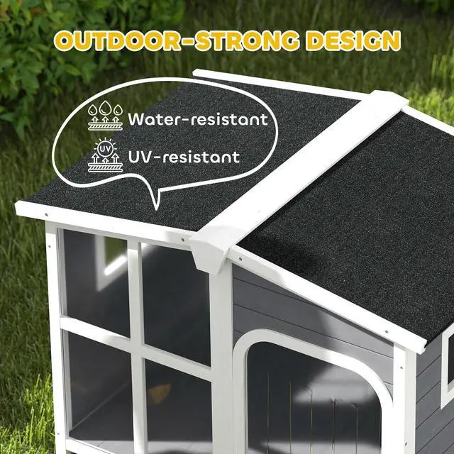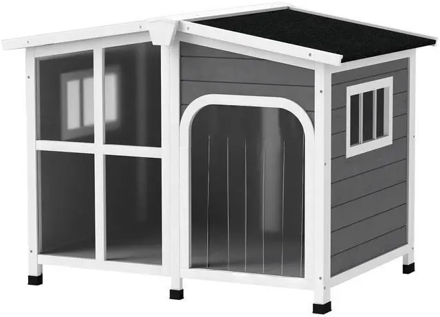 Your dog is sure to enjoy a big Aosom pet house. An openable roof lets you reach in to pet your pup and make eye contact while giving them commands. Its outdoor-strong materials will assure quality that survives rain, while the cabin design offers a cute look for your yard. What's safer for the Earth is often safer for our pets. We used climate-friendly materials, treating the air we breathe with care.
