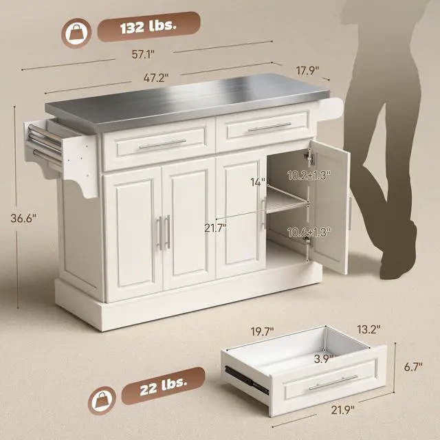 - - Weight Capacity: 132 lbs. (total), 33 lbs. (shelf), 22 lbs. (drawer)