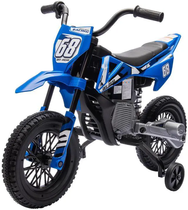 Rev up the fun with the Qaba kid's motorcycle bike. Featuring manual throttle control for speeds between 1.5-3.1 mph and powerful dual 12V motors, this electric motorcycle for kids offers a thrilling ride. Kids can enjoy built-in music and a power indicator for an immersive experience, complete with training wheels to keep the little riders balanced and safe across any adventure.
