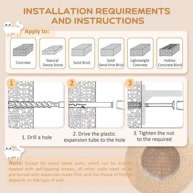 Transform your wall into a feline paradise with the Aosom cat shelf condo. This wall-mounted cat tree, crafted from natural cattail, offers a cozy spot for your kitty to lounge. Including a washable soft cushion, it's a wonderful cat shelf for pet owners wanting to get their cats more active. Suitable for cats under 10 lbs., it turns any wall into a fun cat climbing wall.