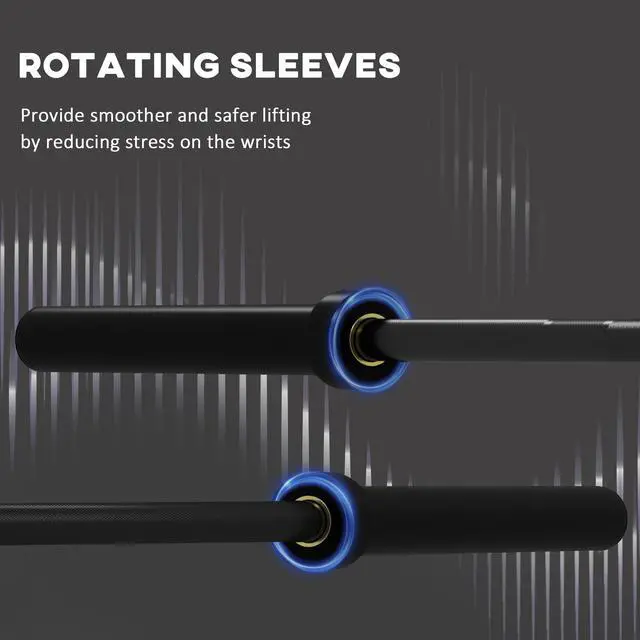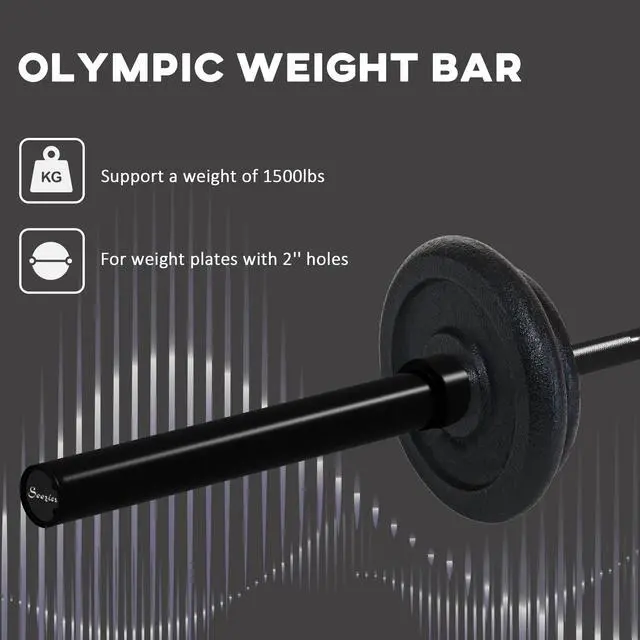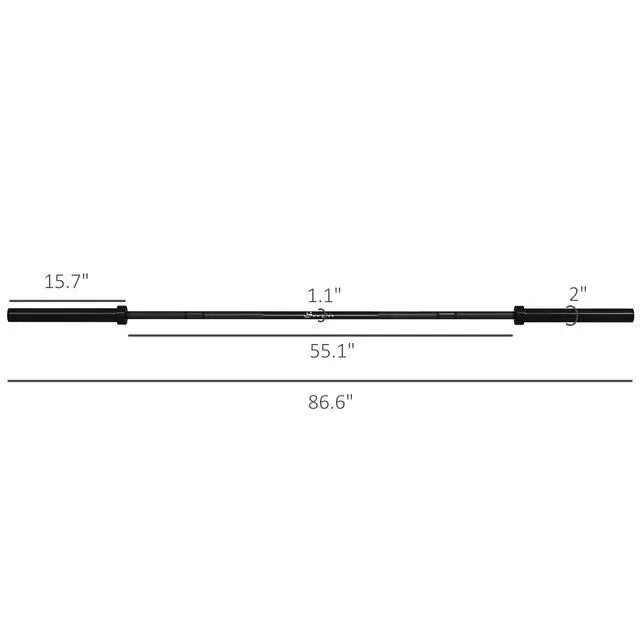 Aim high and lift heavy with the Soozier Olympic bar. This powerhouse will make you a powerhouse with a massive 1500 lbs. capacity. Do bicep curls, squats and bench press. Fitting 2" weight plates and crafted from strong steel it helps push your limits, enduring daily exercise without bending out of shape. Non-slip knurling texture offers the grip needed to hold on and push to that next rep. As you lift the sleeves rotate reducing strain to keep it comfortable. Lift big; score big with Soozier.