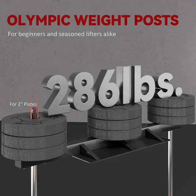 - - Accommodates three weight posts for adjustable resistance up to 286lbs.