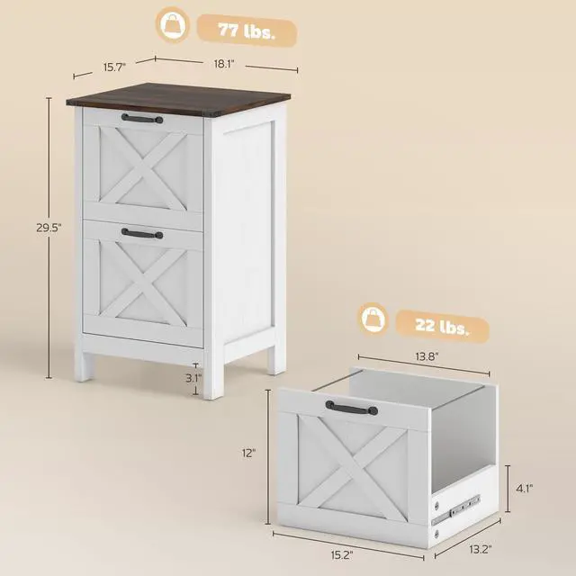 - - Weight Capacity: 77 lbs. (overall), 33 lbs. (top), 22 lbs. (drawer)