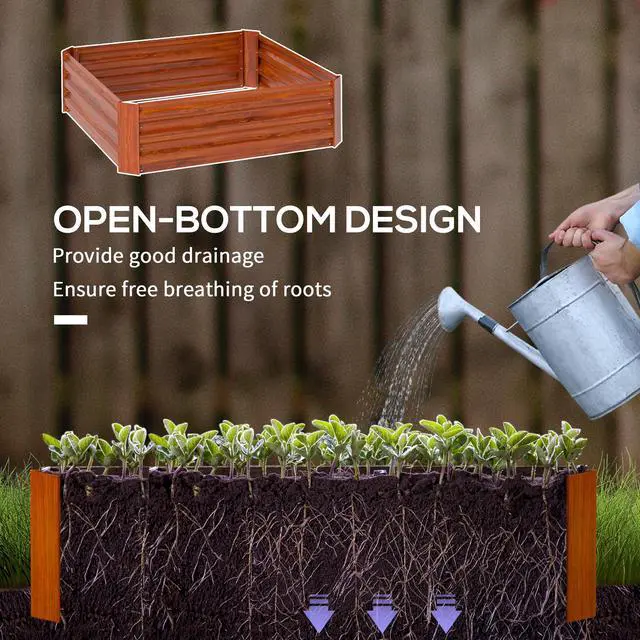 This galvanized steel raised garden bed not rust or rotting is a great yield blend for garden use. It's made from galvanized metal for longlasting utility. Stronger and stable rectangle appearance will not warp more solid than wood. The elevated garden bed will provide adequate soil drainage and keep root development warm and strong to improve plant health.