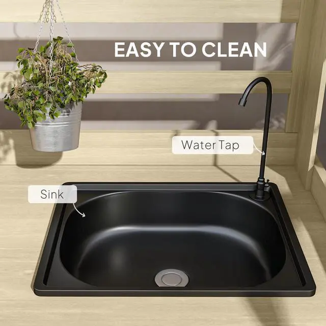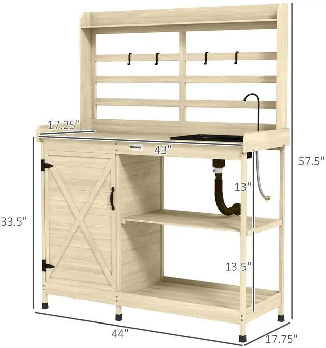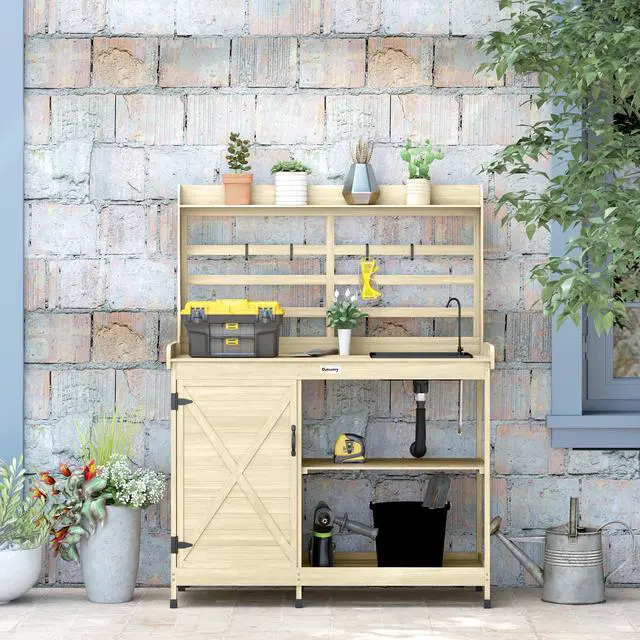 Aosom potting station is a wonderful outdoor workstation for all your gardening needs. With a spacious work surface and large storage space, you will have plenty of space to do your gardening. Equipped with a sink and a water tap, it is easy to do the gardening work and keep clean. Finished with water-based paint, it can be placed outdoors without fear of sunlight and rain. With a country style, it will decorate your outdoor space and make planting enjoyable!