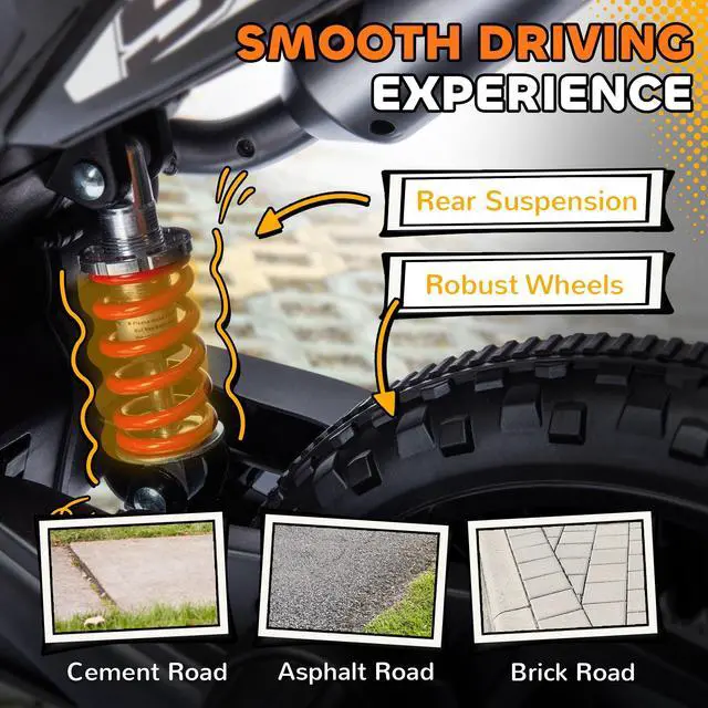 Rev up the fun with the Qaba Aprilia-authorized kid's electric bike! Complete with removable training wheels and a rear-wheel shock absorber, this kid's motorcycle ensures a smooth learning curve. Powered by 12V dual motors, it offers up to an hour of ride time at 6km/h speeds. Great for young riders aged 37-96 months seeking thrilling adventures on their electric dirt bike.