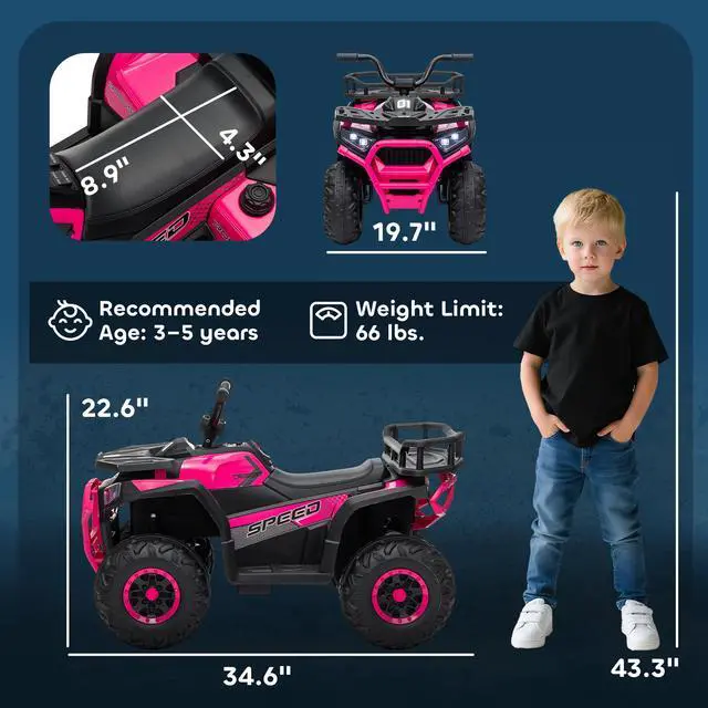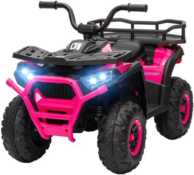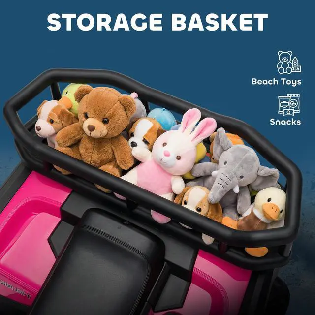 Adventure awaits with the Qaba Kids ATV! This electric quad is ready to handles multiple terrainsâcement, or brickâwith its robust treaded wheels and suspension system. The handy storage basket also holds all the essentials for a day's journey. Gear up for fun with pedal-powered speeds of 1.9-3.7 mph, sure to thrill every young explorer!