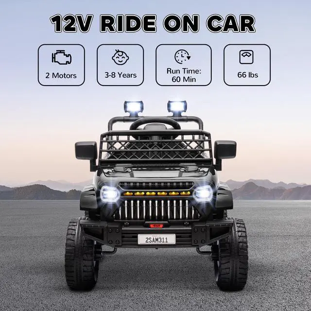 - - 12V kids car with dual motors, offering 60 minutes of run time