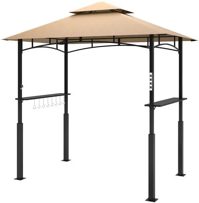 Transform your grilling experience with the Aosom Grill Gazebo! Its double-top design enhances air circulation and reduces smoke build-up. The PA-coated, flame-retardant canopy offers UV protection and splash resistance, ensuring a secure backyard barbecue. Features include handy shelves, hooks for your grilling essentials, and a built-in bottle opener for convenience. Suitable for any barbecue enthusiast.
