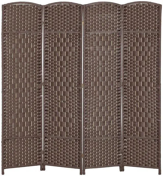 Transform your space with ease using the room divider screen from Aosom. Its polypropylene makeup ensures superior privacy and unmatched strength compared to traditional paper fiber. This portable wall marries functionality with fashion via a stylish four-panel folding design accented by nine metal hinges. An elegant arched pine wood frame and polypropylene weave make the Aosom folding screen a chic partition for privacy.