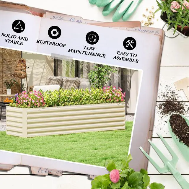 If you have multiple kinds of plants or flowers that you want to keep organized, this Aosom raised planter bed is a great choice for you. You can grow plants, vegetables, flowers and more in a space of your choosing. This outdoor planter box is made from galvanized steel for strength. The 8' x 2' size gives plenty of growth space, with it fully open inside so roots have enough space. Use it outdoors - bring some life into your space, wherever.