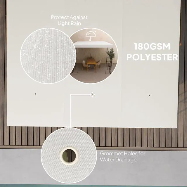 Transform your outdoor space with the Aosom Pergola Gazebo. Crafted from 180gsm polyester fabric, this metal pergola offers UPF30+ protection and splash resistance, with added leaking holes to prevent rainwater buildup. The powder-coated metal frame ensures stability and is great as a deck pergola, patio pergola, or hot tub gazebo. Elegant patterns on the columns enhance any decor.