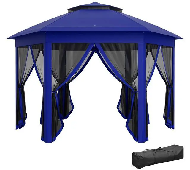 Aosom's 13' small canopy with mesh sidewalls is great for family parties, weddings, picnics, sporting events, outdoor vending, craft fairs, camping trips, and more. This portable gazebo features a solid steel frame and six mesh sidewalls for ventilation and protection. With a steel frame, you know this screened canopy will last you from event to event for years to come. Furthermore, the outdoor tent screen house comes with a carry bag for easy transport and storage.