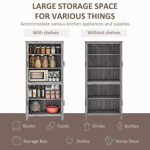 Need some more storage options in the kitchen? This Aosom kitchen pantry storage cabinet can help bring your kitchen from cluttered to organized in no time. It features a clean-lined design with rustic color, bringing an updated contemporary touch to your home esthetic. In contrast, its two cabinets and 5-tier shelves offer up effortless storage for all your odds and ends. Spend more time cooking and entertaining with this Aosom storage cabinet with doors.