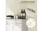 - - Beadboard panels doors and round handles enhance modern esthetic