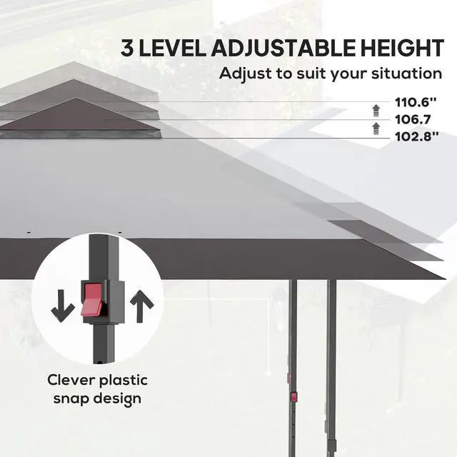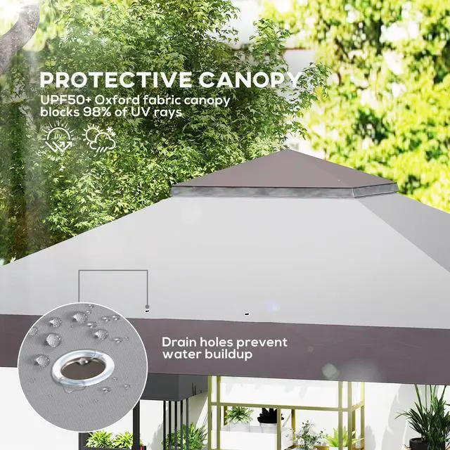 - - Extended eaves increase shade coverage for 10 people comfortably
