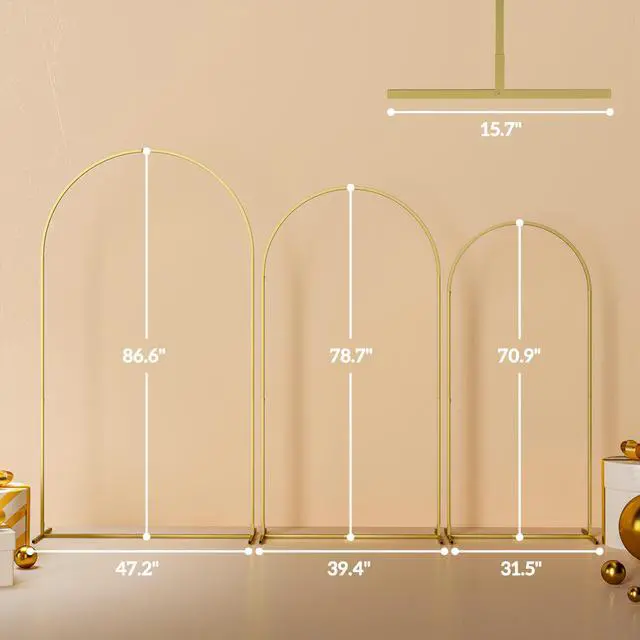 - - 7, 6.5, 6 ft height three-piece garden arch with a luxurious gold coating for a touch of elegance
