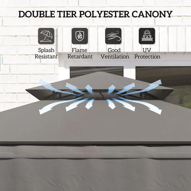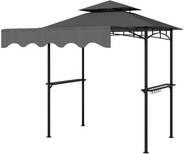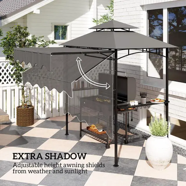 Transform your grilling experience with the Aosom Grill Gazebo! Its adjustable height awning shields you from unpredictable weather and harsh sun, while the double-top design ensures smoke-free air circulation. Equipped with side shelves and hanging hooks, this BBQ grill gazebo keeps everything within arm's reach, making it a must-have for every barbecue enthusiast.
