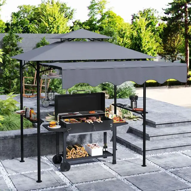 - - Grill Gazebo Dimensions: 95.3" L x 58.7" W x 97.6" H (fold down awning)